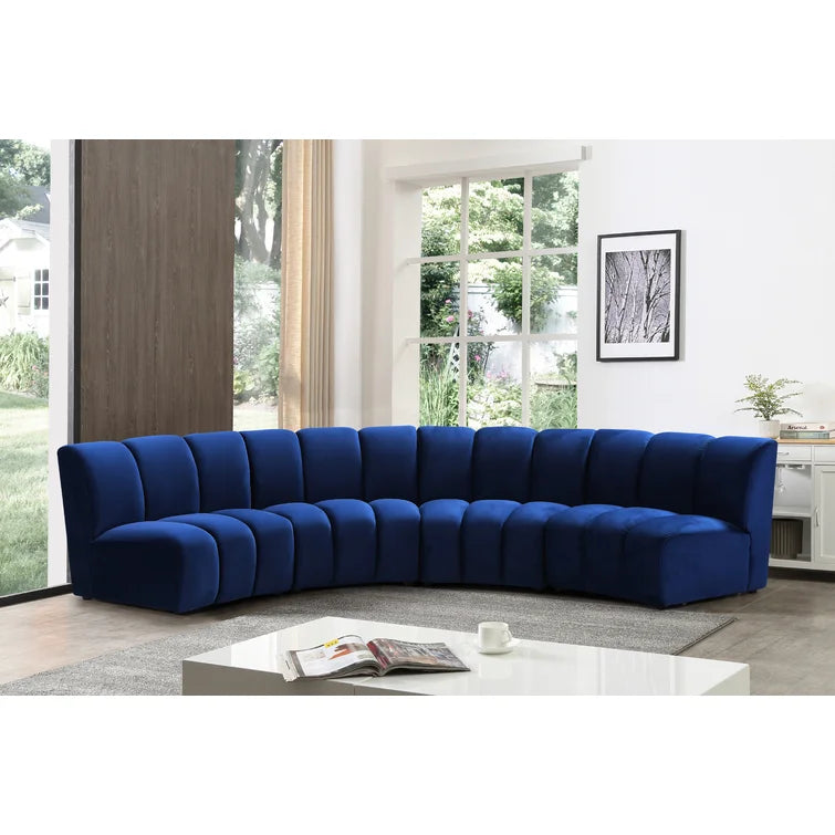 Create a seating group that works for every possible situation with this Infinity modular 5-piece sectional and other pieces in the Infinity collection. Upholstered in soft velvet material that feels great against the skin and offers long-wearing beauty, this piece fits with other Infinity items for an infinite number of combinations that get your seating requirements just right but that look just as nice when used on their own.